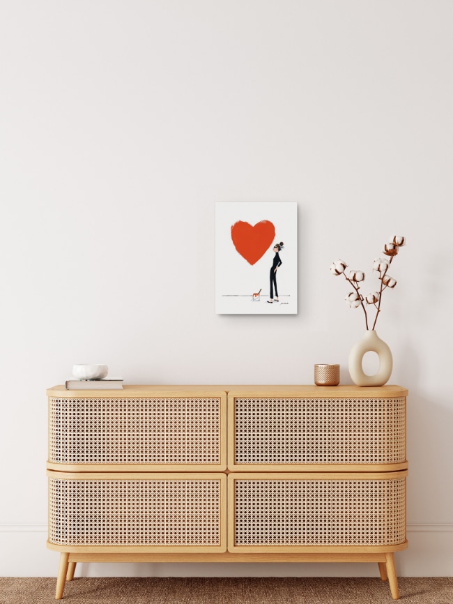 La lámina Love Graffiti es para mí algo más que una ilustración. El día que enseñé en mis redes este diseño, ¡fue todo un éxito! Desde entonces, el dibujo de la chica pintando un enorme corazón en la pared, se ha convertido en todo un clásico de mi colección.